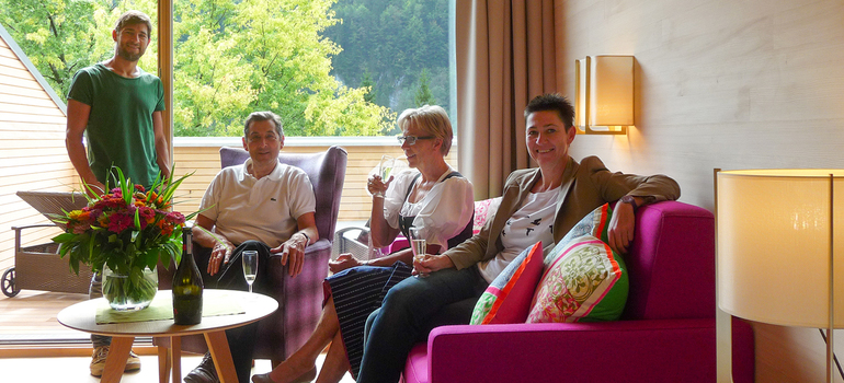 Montags um 17.30 Uhr laden wir Sie beim Begrüßungscocktail ein, unsere Familie kennenzulernen. Mittwochnachmittags begleiten unsere Wanderführer Sie für gewöhnlich zu ausgesuchten Lieblingsplätzen im Bregenzerwald.