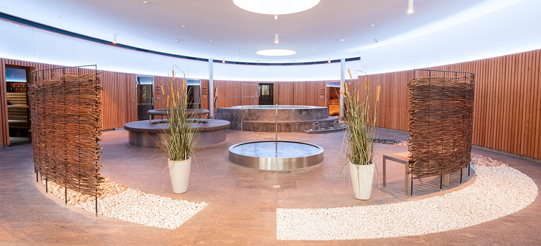 - Wasserattraktionen wie Nackenduschen und Sprudelliegen