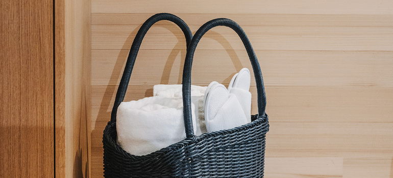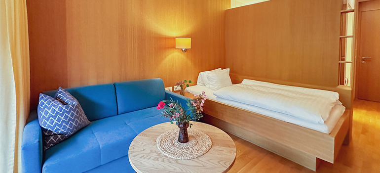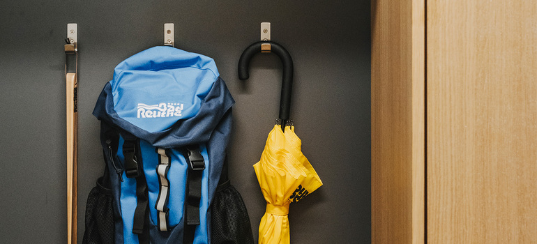 - auf dem Zimmer: kuscheliger Bademantel, Badekorb, Rucksack und Regenschirm